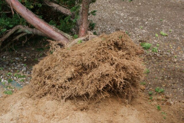 苗を植え付ける際、根を切った部分から新しい根が伸び出す。ポット苗をそのまま植え付けると、今までの根が今まで通りの慣性で伸びるだけで、外に向かって伸びないため、なかなか根が張らず活着も遅れる。多少根をほぐしたり切ったりすることを勧める。